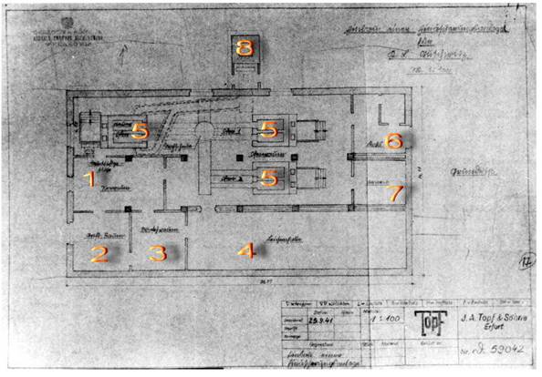 Plan d’une chambre à gaz et de crématoire, firme Topf und Söhne