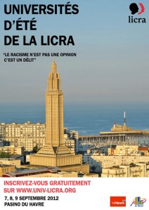 Les universités d’été de la LICRA auront lieu les 7, 8 et 9 septembre 2012 au casino du Havre. Le thème de ces universités est : Le racisme n’est pas une opinion, c’est un délit