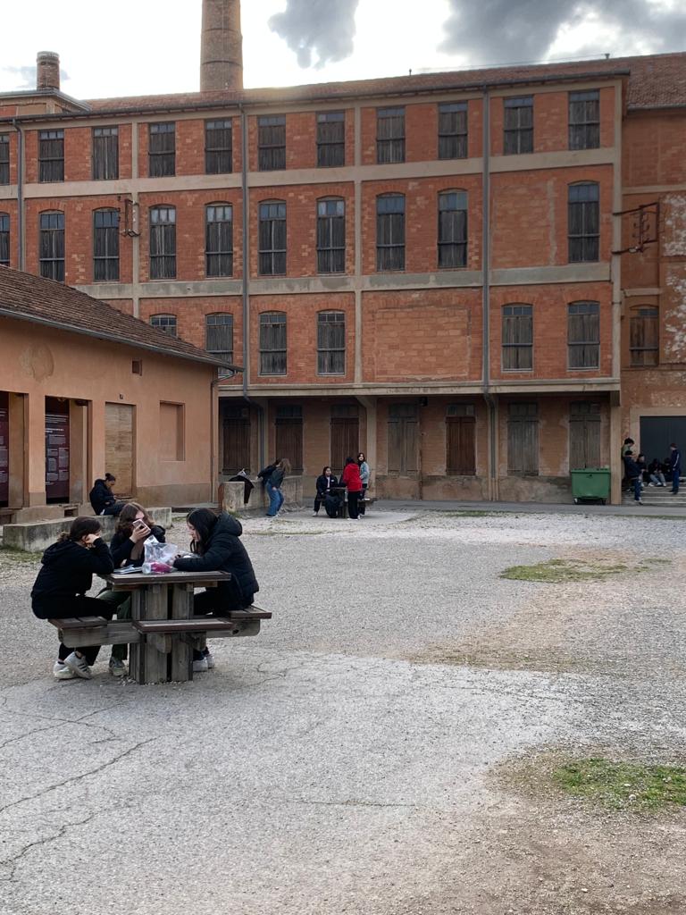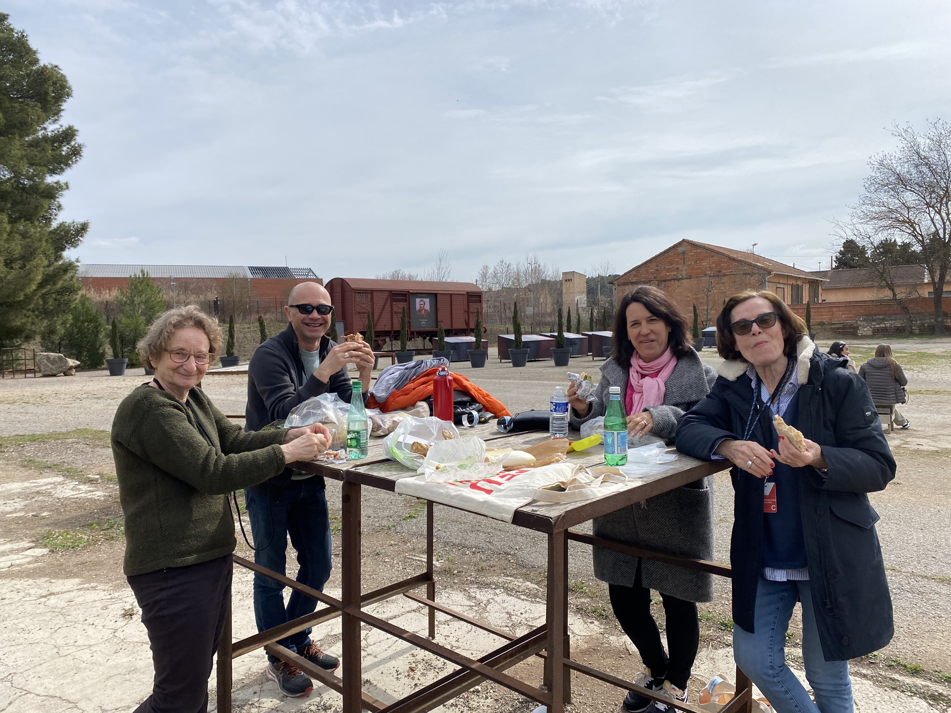 Après une matinée bien chargée, pause déjeuner dans la vaste cour du Camp sous un timide soleil de fin d’hiver.
