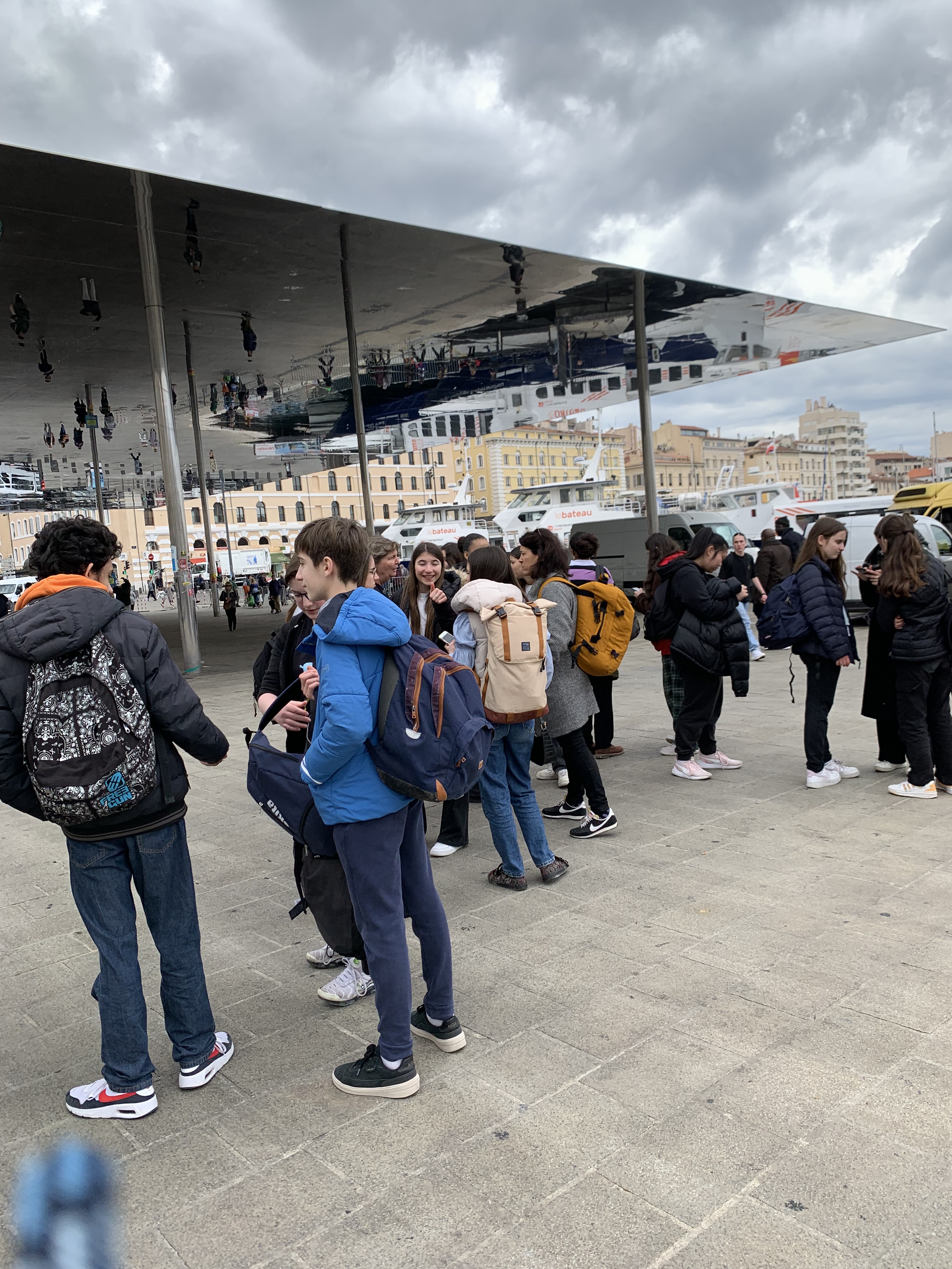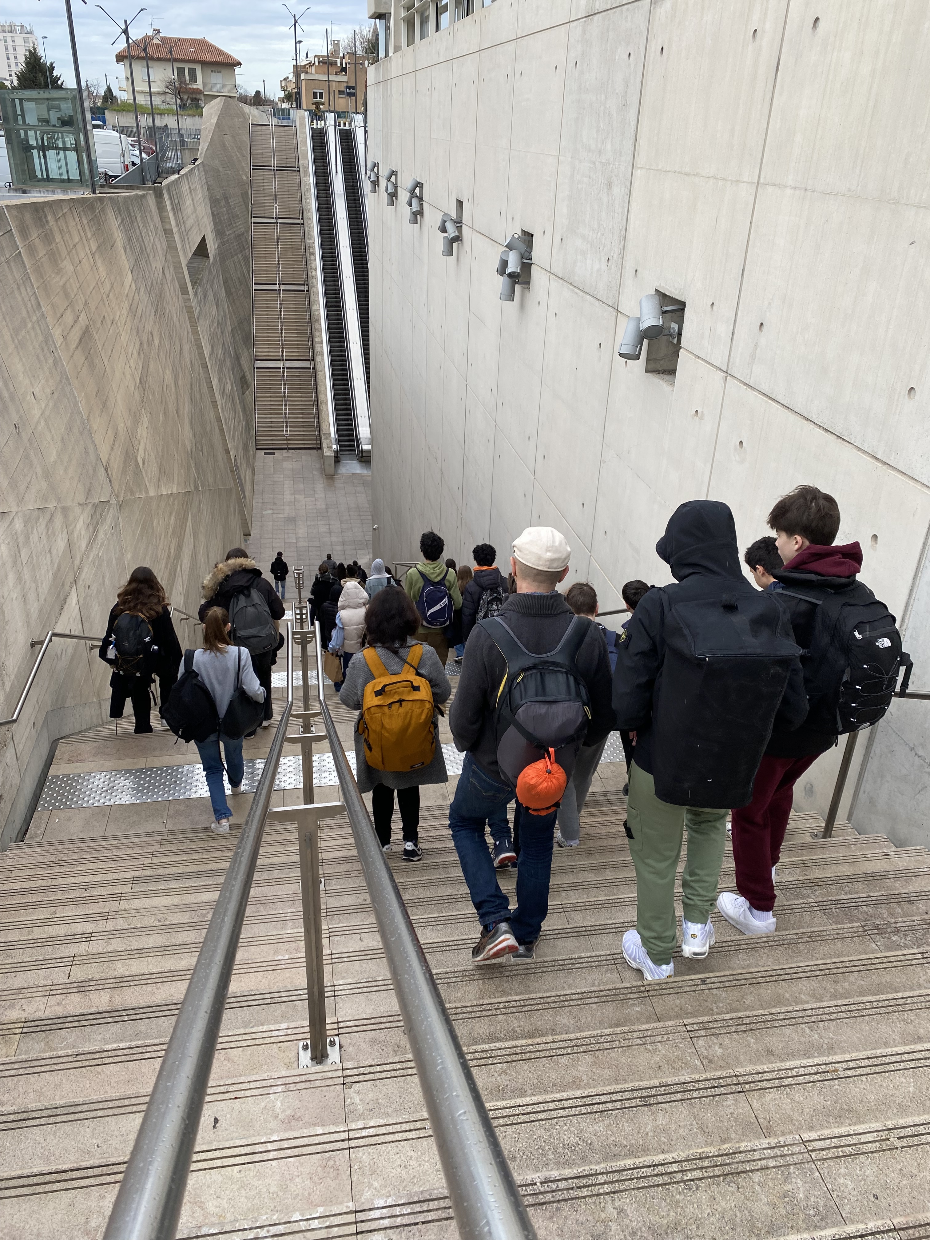 Sur le trajet du retour vers la gare Saint-Charles, un petit moment de liberté est proposé aux élèves tout heureux de profiter de cette offre. Certains vont acheter des souvenirs, ou découvrir le quartier, d’autres compléter leur repas dans un fast food, pendant que les adultes vont s’assoir à la terrasse d’un café face au Vieux Port.