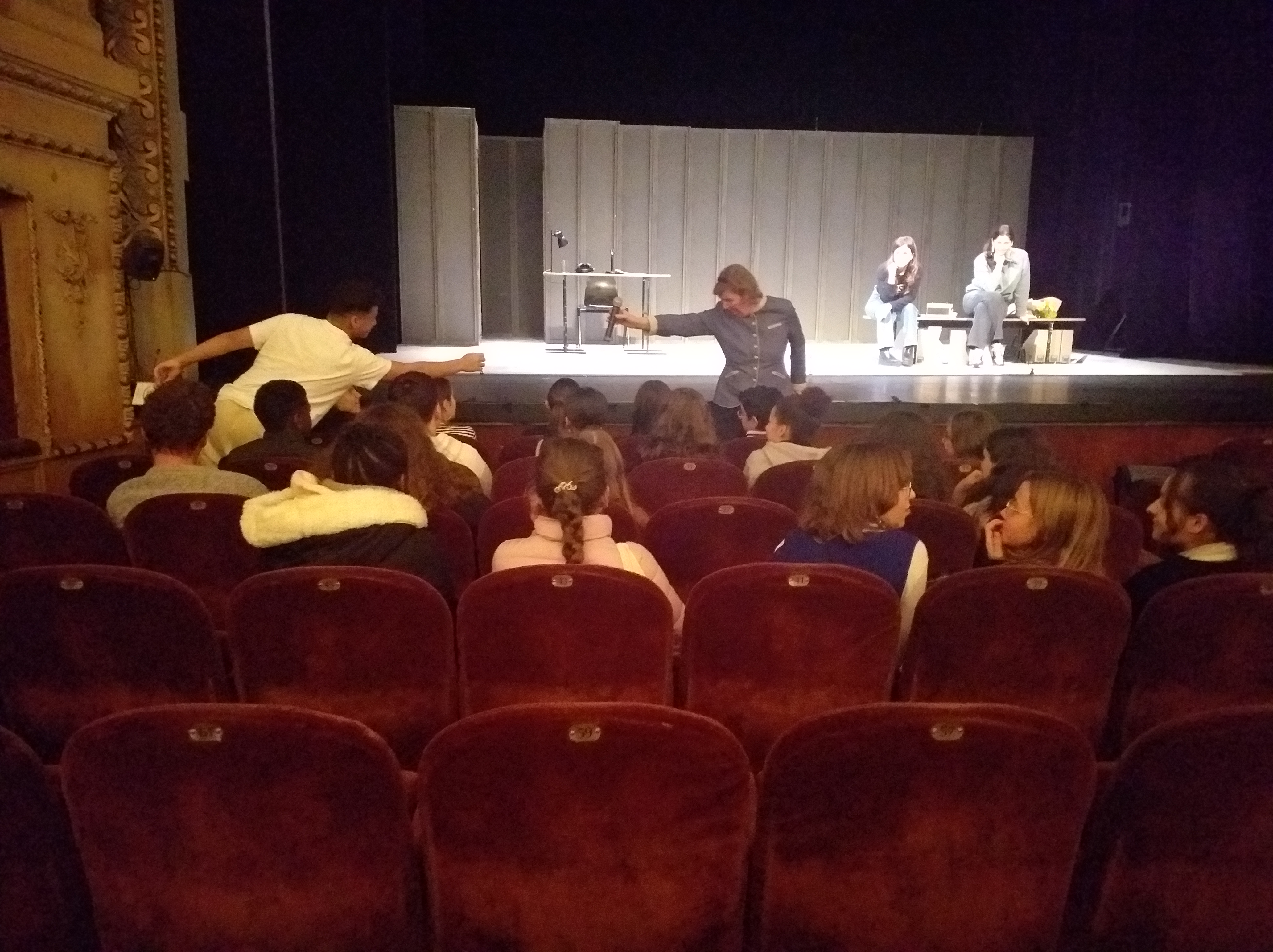 Pour les élèves d’UPE2A, récemment arrivés en France, cette soirée restera sans doute dans leur mémoire, car c’était la toute première fois qu’ils entraient dans un théâtre, et ils se sont montrés extrêmement attentifs et présents au dialogue.